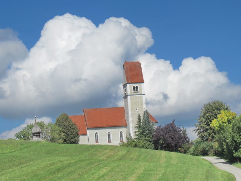 Die über 500 Jahre alte Wallfahrtskirche St. Florian liegt auf dem Weg zwischen Frasdorf im Chiemgau und Wildenwart in einer eh schon sehenswerten und exponierten Lage. Das Erscheinungsbild wird immer wieder von mächtigen Wolken, die sich über dem Kirchturm aufbauen verstärkt – wie diese aktuelle Aufnahme zeigt.