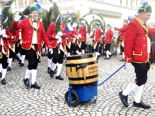 Unsere Aufnahmen zeigen Eindrücke vom Gastauftritt der Kirchheimer Schäfflerzunft in Prien.