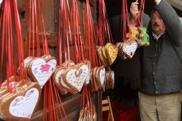 BHM_Kirchweihherzerl.jpg: Die süßen Lebkuchen-Herzerl des Volksmusikarchivs sind eine beliebte Erinnerung an den Kirchweihmontag. © Bezirk Oberbayern, Archiv BHM, Aufnahme: Gerhard Nixdorf.