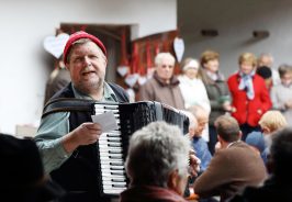 BHM_VMA Ernst Schusser.jpg: Volksmusikpfleger Ernst Schusser begeistert mit seinen Moritaten- und Wirtshausliedern. © Bezirk Oberbayern, Archiv BHM Amerang (G. Nixdorf).