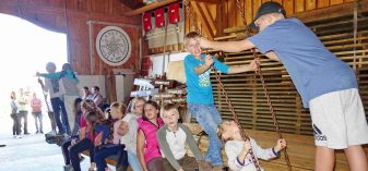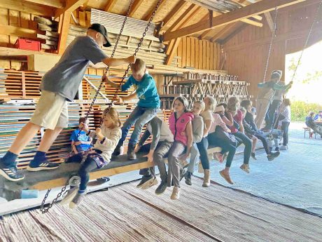 Ihre helle Freude hatten die Kinder und Jugendlichen vom Atzinger Trachtenverein „Daxenwinkler“ Atzing als es nach Jahren der Pause endlich wieder möglich war, im Vereinsstadel auf einer Kirta-Hutsche Platz zu nehmen. Damit alles mit Schwung und doch in Vorsicht ging, dafür sorgte das Jugendleiterteam um Florian Röger ebenso wie für eine kleine kulinarische Versorgung.