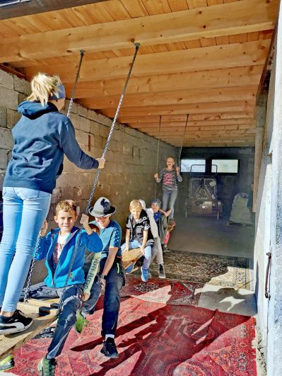 Ihre sichtbar helle Freude hatten die Kinder vom Trachtenverein “D´Lamstoana” als sie von der Familie Hamberger zum Kirtahutschen nach Kaltenbrunn eingeladen wurden. Unsere Bilder zeigen die mit viel Schwung unterwegs gewesenen Dirndl und Buam.