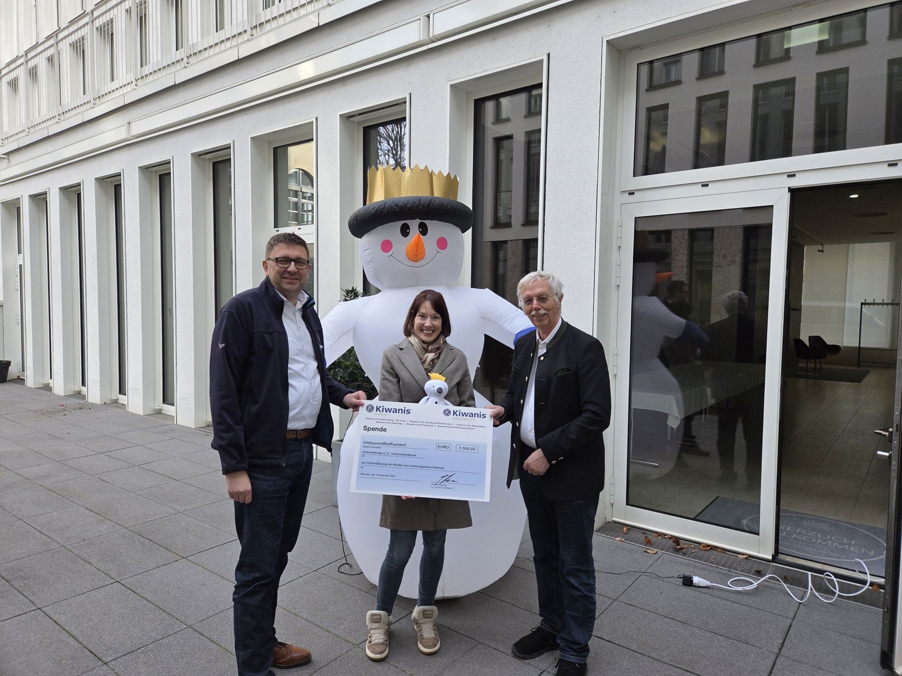 von links nach rechts: Thomas Quiram (Lt. Governor), Cornelia Pagel (1. Vorstandsvorsitzende von Schneekönige e. V.) und Peter Bitzl (Präsident KC Garmisch-Partenkirchen)