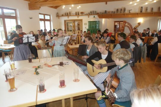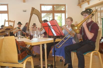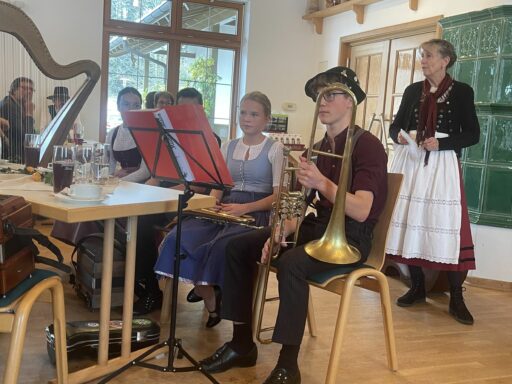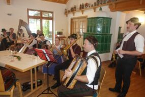 Heuer waren – zum Teil auch mit erfrischendem Gesang – mit dabei die Gruppe „Bresiad ja nix“ aus Bad Feilnbach und Raubling, „die Zsammgspuit-Musi“ aus Vogtareuth, die Geschwister Vordermayer vom Trachtenverein Söllhuben, die Bruckmühler Hausmusi, die Doffemoar-Musi aus Pfaffenhofen sowie Rebekka und Jona mit Hackbrett und Ziach aus dem Inntal. Angenehm überrascht zeigten sich die Besucher über zum Teil anspruchsvolle Weisen, unter anderem aus Finnland, Irland oder aus der Hand von Mozart. Die gute Stimmung zusammengefasst wurde mit dem Gemeinschaftslied „Lasset uns das Leben genießen“, zu dem Benedikt Mies mit seiner Ziach anstimmte. Einen besonderen Dank bekam der gastgebende Trachtenverein „Daxenwinkler“ Atzing für die Räumlichkeiten, für den Küchen- und Kaffee-Service sowie für die Kuchen der Trachtenfrauen. Erster Vorstand Konrad Huber vom Atzinger Trachtenverein freute sich über das wohltuende Singen und Musizieren und dankte seinerseits dem KJR für dessen Engagement im Sinne nachkommender Volksmusikanten.