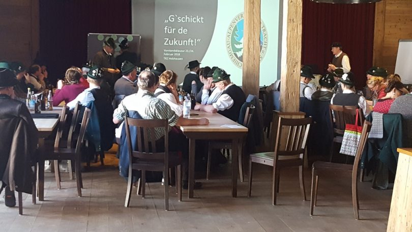 „G’schickt für die Zukunft“ lautete das Thema der Vorständeklausur des Chiemgau-Alpenverbands. Im Trachtenkulturzentrum Holzhausen trafen sich die Vereinsvorstände und Teile des Gauausschusses, um an zwei Tagen Fragen zu verschiedenen Schwerpunkten zu diskutieren. Ein kleiner Arbeitskreis, bestehend aus Vereinsvorständen und Gauausschussmitgliedern hatte sich im Vorfeld Gedanken gemacht und sechs Themenbereiche erarbeitet, mit denen sich die 50 Teilnehmer in kleinen Arbeitsgruppen beschäftigten. Die Themen lauteten: