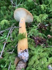 Bei diesem vergleichsweise seltenen Schwammerl handelt es sich um den Milchbrätling. Seine Besonderheit, die er sich mit seiner Artverwandten aus seiner Familie teilt, ist der im Fleisch befindliche Milchsaft. Im Unterschied zu den meisten Artverwandten schmeckt der Saft sehr mild, wodurch sich der Milchbrätling hervorragend als Speisepilz eignet. Um keinen Milchsaft zu verlieren, ist es empfehlenswert, ihn vor dem Braten nicht zu schneiden.