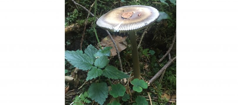 Bei diesem Exemplar handelt es sich um einen (zweifarbigen) Scheidenstreifling, einem Pilz aus der Gattung der Wustlinge, zu dem unter anderem auch der giftige Fliegenpilz und der tödlich giftige Knollenblätterpilz gehört. Obwohl prinzipiell essbar, sollte aus diesem Grund der Pilz nur von Kennern gesammelt werden. Charakteristische Merkmale für die Art sind die starke Beriefung am Hutrand sowie der ringlose Stiel, der am unteren Ende in einer lappigen Hülle steckt.