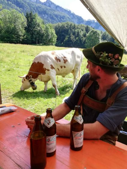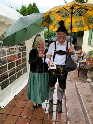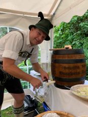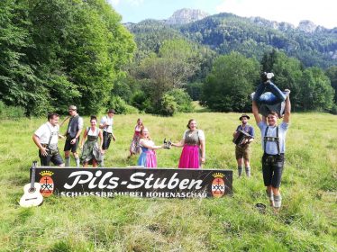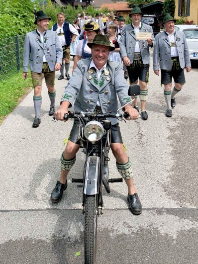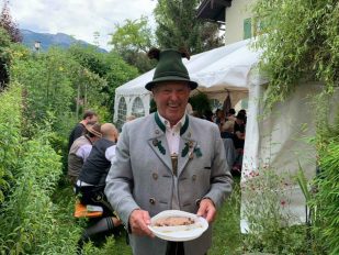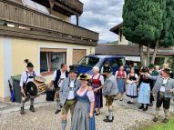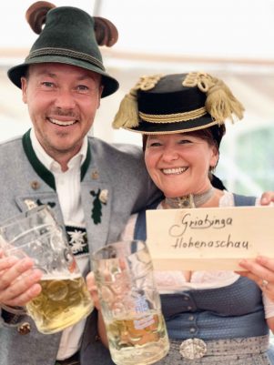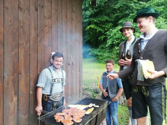 Das Gautrachtenfest des Chiemgau-Alpenverbandes in Schleching fiel den Corona-Bestimmungen zum Opfer – doch im Kleinen und mit Abstand am Gaufestsonntag war in den einzelnen Orten der 23 Gauvereine möglich. So unter anderem auch beim Trachtenverein “D´Griabinga” Hohenaschau – dessen Aktive luden zum Grillen in den Vereinsstadel und zum gemütlichen Beisammensein mit Vorstand Claus Reiter ein. Eine weitere Einladung sprachen Daniela und Stephan Baumgartner aus, bei ihnen gab es nach dem Frühschoppen einen Mittags-Schweinsbraten, einen Bieranstich und um punkt 14 Uhr einen Böller-Schuss als Startsignal für einen kleinen, recht lustigen Ersatz-Festzug – von den beiden Zusammenkünften mit guter Laune, Tracht und gescheiter Bewirtung zeugen diese Bilder.