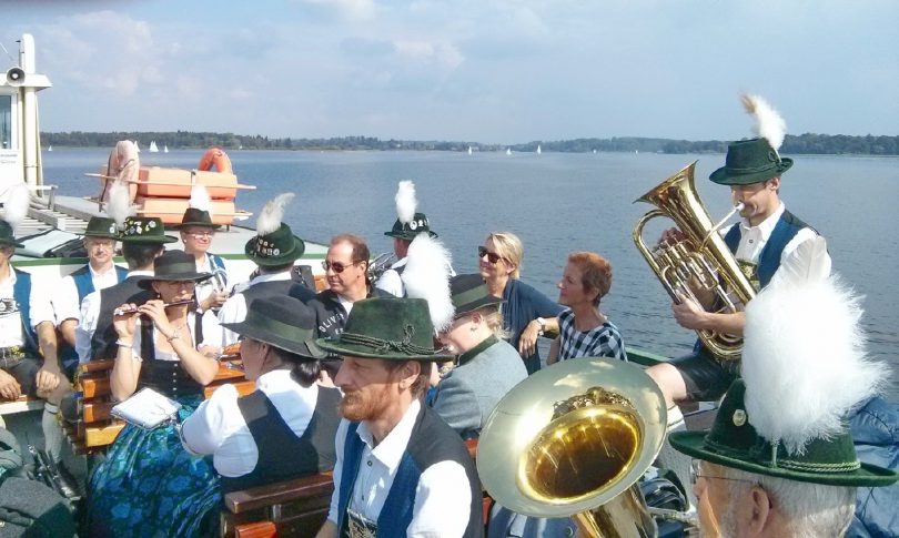 „Den Chiemsee zum Klingen bringen“ – das ist das Ziel des Musikbundes Ober- und Niederbayern mit seinem Bezirk Inn-Chiemgau, wenn am Sonntag, 22. September zur traditionellen Blasmusik-Veranstaltung „Klingender Chiemsee“ eingeladen wird. Ganztägig sorgen am und auf dem Wasser, auf den Chiemsee-Inseln sowie in der Chiemsee-Bahn verschiedene Blas- und Musikkapellen für konzertante und unterhaltsame Musik. Der Tag beginnt mit musikalischen Chiemsee-Bahn-Fahrten vom Priener Bahnhof nach Prien-Stock zur Schiffsanlegestelle mit der Musikkapelle Bad Feilnbach (11.15 Uhr), mit der Trachtenkapelle Dettendorf (12.15 Uhr), mit der Stadtkapelle Kolbermoor (13.38 Uhr) und mit der Eisenbahner-Musikkapelle Rosenheim (14.15 Uhr). Standkonzerte beim Cafe Luitpold geben ab 11.30 Uhr die Musikkapelle Bad Feilnbach und ab 12.30 Uhr die Trachtenkapelle Dettendorf. Musikalische Dampferfahrten ab Prien sind um 12.30 Uhr, 14 Uhr und 14.30 Uhr zur Herren- und Fraueninsel. Auf der Herreninsel beim Schlosshotel beginnen Standkonzerte um 13 Uhr (Bad Feilnbach) und um 14.30 Uhr (Dettendorf). Die Gastkonzerte auf der Fraueninsel sind um 14.45 Uhr beim Gasthof Zur Linde mit der Stadtkapelle Kolbermoor und um 15.15 Uhr beim Klosterwirt mit der Eisenbahner-Kapelle Rosenheim. Die gesamten Termine und Konzerte finden nur bei günstiger Witterung statt.