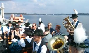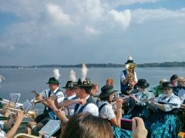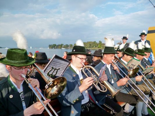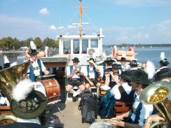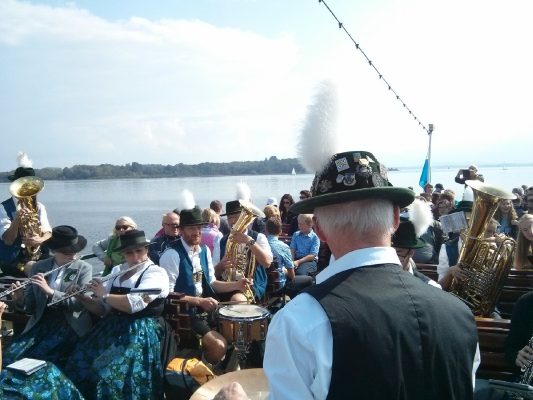 Freitzeitgenuss und Blasmusik harmonierten in besonderer Weise als am und auf dem Chiemsee der Bezirk Inn-Chiemgau vom Musikbund Ober- und Niederbayern am letzten September-Sonntag die traditionelle Veranstaltung „Klingender Chiemsee“ durchführte. Mit dabei waren in den Wagons der Chiemsee-Bahn, beim Cafe Luitpold in Prien, auf den Chiemsee-Schiffen sowie auf der Herren- und Fraueninsel die Musikkapellen Vagen, Wildenwart, Prien und Bernau sowie die Eisenbahner-Musikkapelle Rosenheim. Leonhard Eisner als Vorsitzender des Blasmusik-Bezirks Inn-Chiemgau zeigte sich zufrieden. „Mit diesem Spielen an verschiedenen und durchwegs einladenden Plätzen haben wir wieder neue Freunde für die echte bayerische Blasmusik gefunden, besonders die Urlaubsgäste aus aller Welt waren höchst begeistert von den Darbietungen“, so der Organisator vom „Klingenden Chiemsee“.