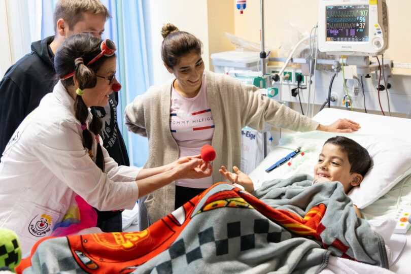 „Diese Arbeit ist sowas von wichtig, die Klinik wäre nicht die gleiche ohne die KlinikClowns.“, sagt Prof. Dr. Muensterer, Direktor der Kinderchirurgie am Dr. von Haunerschen Kinderspital, München.