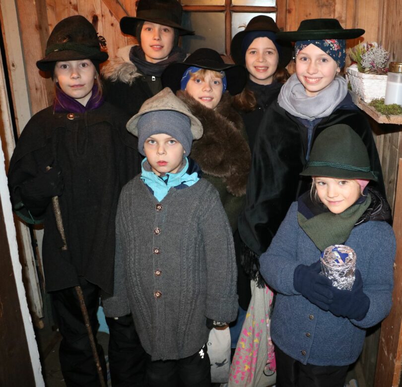 „Heut ist die heilige Klöpfeles-Nacht“. 35 Kinder des Trachtenvereins „Die lustigen Wildenwarter“ zwischen vier und 16 Jahren zogen in sieben Gruppen von Haustür zu Haustür, sangen ihre guten Wünsche für Haus und Hof und baten schließlich um eine Gabe.
