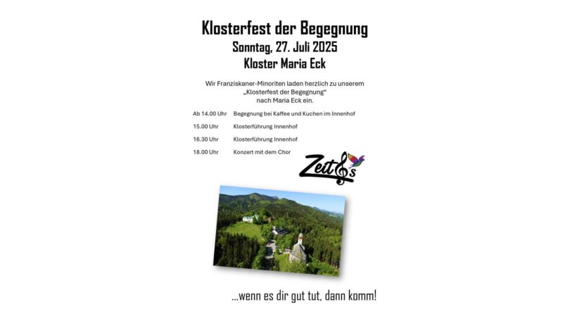 Am kommenden Sonntag, 27. Juli laden die Brüder aus dem Kloster Maria Eck wieder zu ihrem „Klosterfest der Begegnung“ ein.