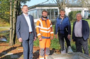 Bürgermeister Simon Frank, Andreas Aringer und Bauhofleiter Rudi Angermeier, sowie der Vorsitzende des Kneippvereins Aschau Dr. Klaus Piwernetz (von links)