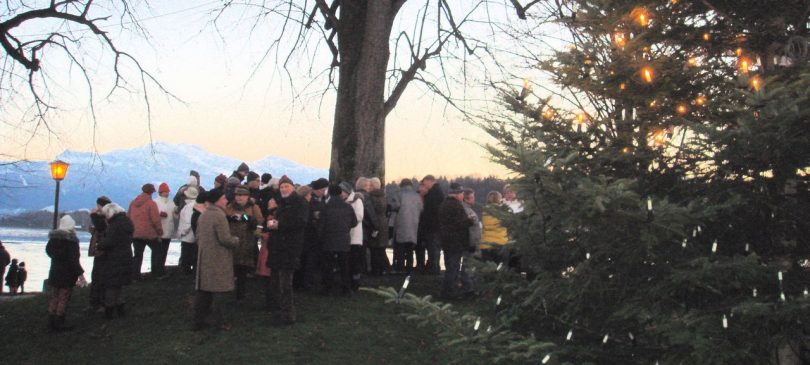 Der prachtvolle Christbaum leuchtet weit ins Land, und der Blick geht über den Chiemsee und hin zu den winterlichen Chiemgaubergen bei Glühwein, Punsch, Selbstgebackenen und etwas Poesie.