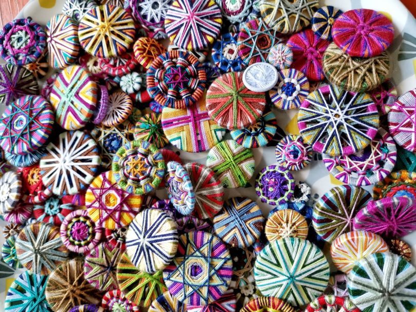 Bericht und Foto: Bauernhausmuseum Amerang: Farbenfrohe Schmuckstücke: handgefertigte Posamentenknöpfe in allen erdenklichen Tönen und Mustern. © Bezirk Oberbayern, Archiv Bauernhausmuseum Amerang.
