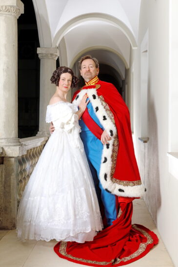 Am Sonntag, 21. September 2025 findet in München wieder der traditionelle Trachten- und Schützenzug statt und das Haus der Bayerischen Geschichte ist dabei! Die Zugnummern 52 a und 52 b gehören zur Entourage von König Ludwig I. und Königin Therese von Bayern. Der Protagonist der diesjährigen Bayerischen Landesausstellung und seine Gattin Therese liefern schließlich auch die Grundlage für den weltweit berühmten Umzug in München. Der Trachten- und Schützenzug wurde im Jahr 1835 zu Ehren der Silberhochzeit des königlichen Paares und zum 25jährigen Bestehen des Oktoberfestes erstmals durchgeführt. Anlässlich der Bayerischen Landesausstellung des Hauses der Bayerischen Geschichte ist das Königspaar heuer mit vertreten. In die Rolle von König Ludwig I. schlüpft der Schauspieler Holger Matthias Wilhelm, bekannt als der Brunnerwirt in der BR-Fernsehserie „Dahoam is Dahoam“. Die Regensburger Schauspielerin Christine Elsa Wagner steht ihm als seine Gattin Therese von Bayern zur Seite.