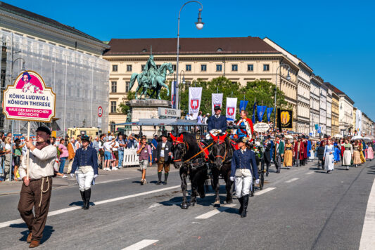München – Ein Hauch königlicher Geschichte lag am Sonntag, 21. September 2025, über der Münchner Innenstadt: Beim traditionellen Trachten- und Schützenzug auf die Wiesn fuhr das berühmte Königspaar, König Ludwig I. und Königin Therese von Bayern, in einer prachtvoll geschmückten Kutsche durch die Ludwigstraße. Es war eine Hommage an die historischen Wurzeln des Oktoberfestes, denn der Trachten- und Schützenzug selbst geht auf das Jahr 1835 zurück, als er erstmals zu Ehren der Silberhochzeit des Königspaares und zum 25-jährigen Bestehen des Oktoberfestes veranstaltet wurde.