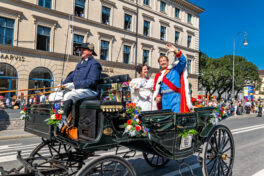 Der Trachten- und Schützenzug, der live in der ARD übertragen wurde, ist eines der international bekanntesten Schaufenster bayerischer Kultur. Über 9.000 Mitwirkende aus Trachtenvereinen, Musikkapellen, Innungen und historischen Gruppen zeigten ein unvergleichliches Bild von gelebtem Brauchtum. Die königliche Kutsche war einer der Höhepunkte des Zuges und sorgte nicht nur bei den Münchnerinnen und Münchnern, sondern auch bei den vielen internationalen Gästen für Begeisterung.