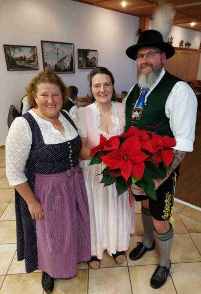 Dies gilt auch für die aktuelle Kindergruppe – sofern sie dabeibleiben – die nach dem Mittagessen einige Ergebnisse ihres Probenfleißes zur Musik von Thomas Weinzierl darbot. Darüber freuten sich auch etliche Geburtstags“kinder“, welche ebenfalls zum Ehrennachmittag eingeladen waren. Die beiden Vorstände Michael Beutl und Monika Singhammer hatten noch eine Überraschung dabei: Als Dank für die unermüdliche Arbeit der Küchen“bullen“ überreichten sie an deren Chefin Irmi Fritz einen Weihnachtsstern. Bei Kaffee und herrlichen Kuchen – alle gespendet – wurden noch lange Erinnerungen ausgetauscht.