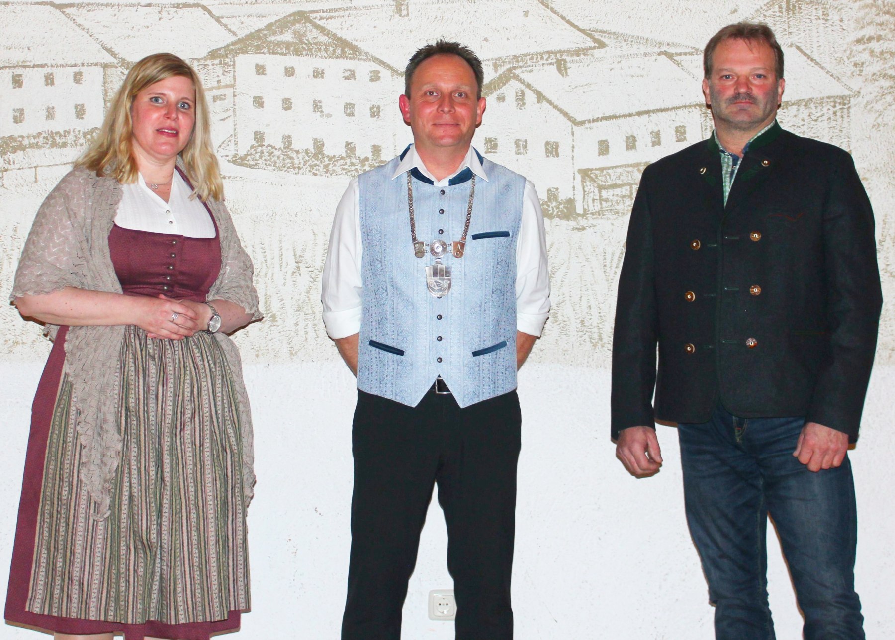 Bürgermeister Daniel Mair (CSU) mit seinen beiden Stellvertretern Josef Prankl, Parteifreie Wählergruppe Frasdorf (PWGF) (rechts) und Gabriele Stein, Freie Wählergemeinschaft Umrathshausen (FWGU)