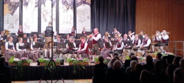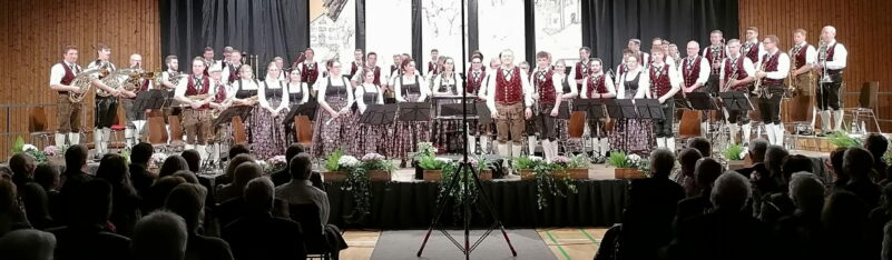 Im zweiten Konzertteil setzte das Orchester noch einmal kraftvolle Akzente. Den Auftakt bildete der Konzertmarsch „Blaues Gitter, rotes Kreuz“ von Tobias Rogors, gefolgt von der eingängigen Polka „Wir leben Blasmusik“ (ebenfalls von Peter Leitner). Bei „Flight“ von Benjamin Yeo verwandelte sich die Beurer Halle klanglich in die Kabine eines Flugzeugs – ein Erlebnis, das die Fantasie der Zuhörer mühelos abheben ließ. Zwei überraschende und stilistisch kontrastreiche Höhepunkte bildeten den Abschluss des Konzerts: „Mission: Impossible“ von Lalo Schifrin ließ mit dem markanten 5/4-Takt die Spannung des bekannten Actionfilms lebendig werden. Danach erklang der Jodler „Der Verliabte“ von Lorenz Maierhofer – zunächst gesungen von vier Musikanten, anschließend in fein abgestimmter Weisenbläser-Besetzung gespielt und schließlich im vollen Orchestersound zu einem strahlenden Finale geführt.