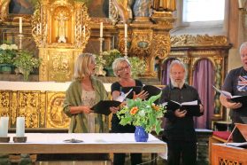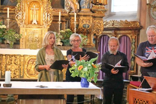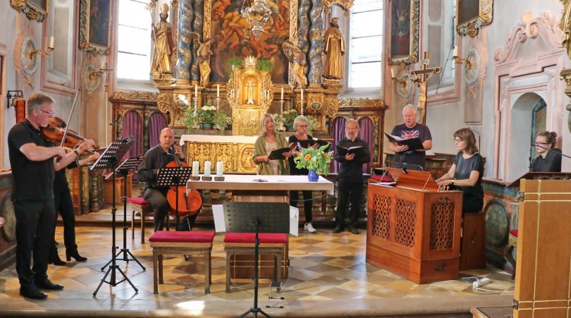 Am Sonntag nach Peter und Paul ehrt der Freundeskreis Müllner Peter von Sachrang e.V. alljährlich den großen Sohn Sachrangs mit einem Konzert. Die Musikreferentin des Freundeskreises, Christine Klinger, versammelte wundervolle Sängerinnen und Sänger und ein hochkarätiges Instrumentalensemble in diesem Jahr. Das stimmgewaltige, aber auch fein nuancierende Gesangsquartett füllte Kirchenschiff und Empore von St. Michael, der Kirche des Müllner Peter, wie wohl ganz selten zuvor. Sowohl der Zusammenklang als auch die Soli-Parts mit Martina Bindls hellem, ausdrucksstarkem und auch in den Höhenlagen klar artikulierendem Sopran, mit Michaela Untersehers kraftvollem, warm modulierendem Alt, mit Rupert Schäffers strahlendem, beweglichen Tenor und Martin Hörbergs mächtigem, vibrierendem Bass nahmen die Zuhörer gefangen und begeisterten sie vollständig. Nicht minder verzauberte das wie aus einem Guss spielende Instrumentalensemble. Stephan Robens, Violine und Gitarre, Magdalena Horche, Violine, Götz von der Bey, Violoncello, und Sepp Schlemer, Klarinette realisierten einen Klangkörper, der fast schon orchesterähnlich und in der Ausgeglichenheit von Klang zu Klang begeisterte. Auch in den Soli überzeugten der bravouröse Cellist Götz von der Bey und der herausragende Klarinettist Sepp Schlemer, beide jeweils von Christine Klinger an der Orgel begleitet. Den Jugendaspekt, das große Anliegen des Müllner Peter, verkörperte der jugendliche Lucas Klinger mit einem teils zarten, teils prägnanten Solo an der Akustikgitarre und in einem feinfühligen, südamerikanisch-temperamentvollen Gitarrenduett von der Morenita do Brasil zusammen mit dem Vollblutmusiker Stephan Robens. Neben diesem Ausflug in die neuere Zeit erklangen Werke in erster Linie aus der Sammlung des Peter Huber. Ausgewählt waren die sieben Sätze aus dem „Avertisment in C“ von Georg Augustin Holler und „Komm Heiliger Geist“ von Franz Bühler. Das tragende Gerüst bildeten die drei Teile der „Missa in C“ von Alois Bauer mit „Kyrie und Gloria“, „Sanctus und Benedictus“ und „Agnus Dei“. Zum Konzertschluss mit „Lob und Preis dem Herrn“ von Johann Sebastian Bach steigerten sich Gesangsquartett und Instrumentalensemble noch weiter geradezu unglaublich zu einem orchestralen Höhepunkt, der die Konzertbesucher zu begeistertem und wahrlich nicht enden wollenden Applaus hinriss. So war es für den ersten Vorsitzenden des Freundeskreises, Dieter Höpfner, nur schwer möglich, in diesem Applaussturm die Schluss- und Dankesworte an die Zuhörer und an die exzellenten Künstlerinnen und Künstler zu richten. Sein besonderer Dank galt der Musikreferentin Christine Klinger für ein überaus beeindruckendes und feinsinnig schönes Konzert unter ihrer Gesamtleitung, so recht im Sinne des zu ehrenden Müllner Peter von Sachrang.