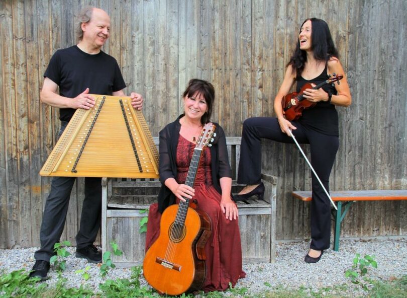 Vor zwei Jahren gaben Rudi Zapf (Pedalhackbrett, Knopfakkordeon, Vibrandoeon) und Ingrid Westermeier (Gitarre) an gleicher Stelle bereits ein umjubeltes, ausverkauftes Konzert. Jetzt kommen sie wieder, verstärkt durch die virtuose und feinfühlige Sunny Howard (Violine). Das Trio präsentiert eine Reise durch die Musik der westlichen und östlichen Welt, über Irland, Finnland, den Balkan, Italien, Frankreich, Spanien und weiter nach Südamerika. Was man hört und sieht, ist pure Lebensfreude — leidenschaftlich und temperamentvoll, temporeich und ausdrucksstark — gemischt mit instrumentaler Virtuosität, moderiert mit Wortwitz und Charme.