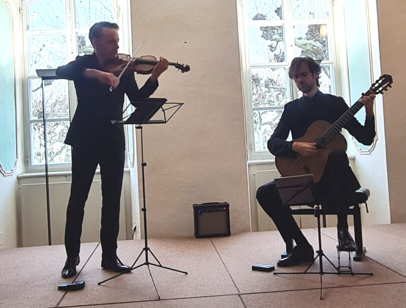 Bericht und Foto: Christiane Giesen – Linus Roth auf der Violine und Petrit Ceku auf der Gitarre beim letzten Konzert der Saison im Augustiner Chorherrenstift.