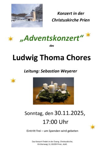Seine feierliche Einführung durch Dekanin Dagmar Häfner-Becker findet statt im Gottesdienst am Sonntag, den 30. November, 1. Advent, um 14 Uhr in der Christuskirche in Prien. Im Anschluss lädt der Kirchenvorstand zum Empfang – und danach zum Konzert des LTG-Chors unter der Leitung von Sebastian Weyerer, das diesen besonderen Tag festlich abrundet.