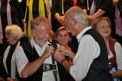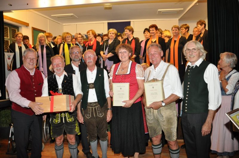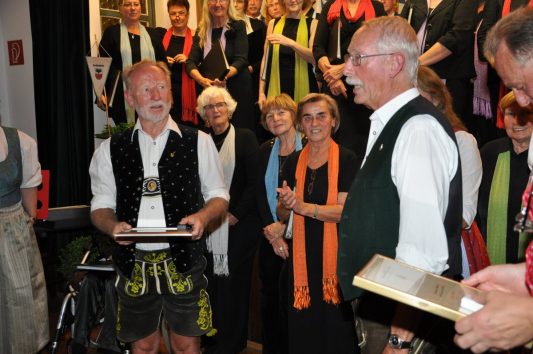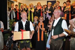 Die Chorgemeinschaft Radebeul-Lindenau war am vergangenen Wochenende zu Besuch bei der Liedertafel und sie veranstalteten in der Schlosswirtschaft Wildenwart ein gemeinsames Konzert. Beide Chöre sangen gemeinsam zu Beginn den Kanon „Singen wir ein Lied zusammen“, dann begrüßte die Liedertafel musikalisch alle Gäste. In seiner Begrüßungsrede konnte der 1. Vorsitzende der Liedertafel, Rainer Mühl, auch den 2. Bürgermeister, Hans Jürgen Schuster, begrüßen, ebenso auch den Vorsitzenden des Chiemgausängerkreises, Albert Müller, der später die Ehrungen vornahm.