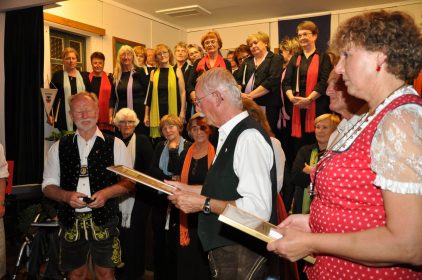 Der Chor aus Radebeul-Lindenau setzte dann das Programm fort mit einer Reihe von Liedern aus den verschiedensten Stilrichtungen. Hervorzuheben ist ein wunderschönes „Ave Maria“ von Karl May. Die wenigsten wissen wohl, dass Karl May auch komponierte und er stammte ja aus Radebeul, so dass es für den dortigen Chor eine Pflicht ist, ein Lied von Karl May zu singen. Es folgte dann noch eine „Winnetou-Rumba“ und zum Abschluss die Amboss-Polka und „Zieht Gedanken auf goldenen Flügeln“ von G. Verdi. Die Zuhörer waren ganz begeistert von den Liedern.