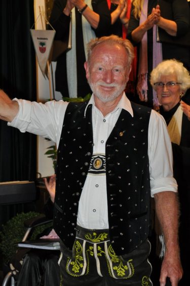 Die Liedertafel umrahmte dann die Ehrungen mit 2 Liedern. Zunächst wurden Elke und Toni Mödl für 20 Jahre Mitgliedschaft in der Liedertafel geehrt, Toni Mödl auch noch für 30 Jahre Singen in einem Chor. Elke Mödl hatte auch die Organisation für die Programmgestaltung mit dem Chor aus Radebeul-Lindenau für das Wochenende übernommen. Dann wurde das Urgestein der Liedertafel, Lothar Rechberger, für 50 Jahre Mitgliedschaft und aktives Singen in der Liedertafel geehrt. Der Vorsitzende, Rainer Mühl, dankte ihm für seine unermüdliche Arbeit und bezeichnete ihn als die Seele der Liedertafel und schenkte ihm noch eine Kiste mit italienischem Rotwein.