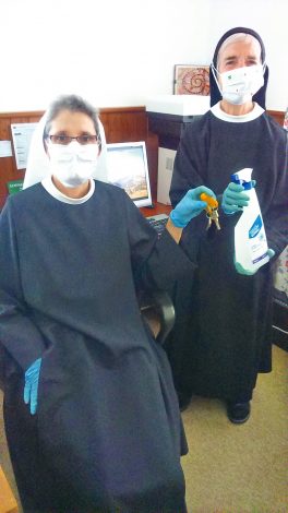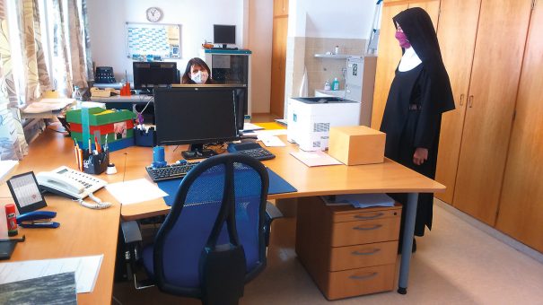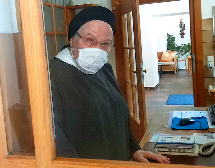 „In unseren Betrieben hat nach der vorsichtigen Öffnung ab Mitte Mai (Klosterladen) und Ende Mai (Gästebetrieb) die Maskenpflicht- und Hygienemaßnahmenphase begonnen! Das war zunächst, neben den finanziellen Mehrausgaben zum Schutz der Gäste, eine logistische Herausforderung. Wie machen wir es im Speisesaal, in den Anmeldebüros, beim Empfang und beim Einkauf im Klosterladen? Hygienemaßnahmenkonzepte mussten erstellt werden, die Gäste ausreichend informiert und die Gastschwestern mit entsprechender Schutzausrüstung versorgt werden. Wir, unsere Mitarbeiter und alle unsere Gästen sollen ja gesund bleiben. Überflüssigerweise trat auch noch ein Wasserschaden bei der Versorgung des kleinen Gästehauses auf, sodass wir die Gäste kurzfristig im Seminarbereich unterbringen mussten. Sie merken, langweilig ist es im Kloster nicht!“