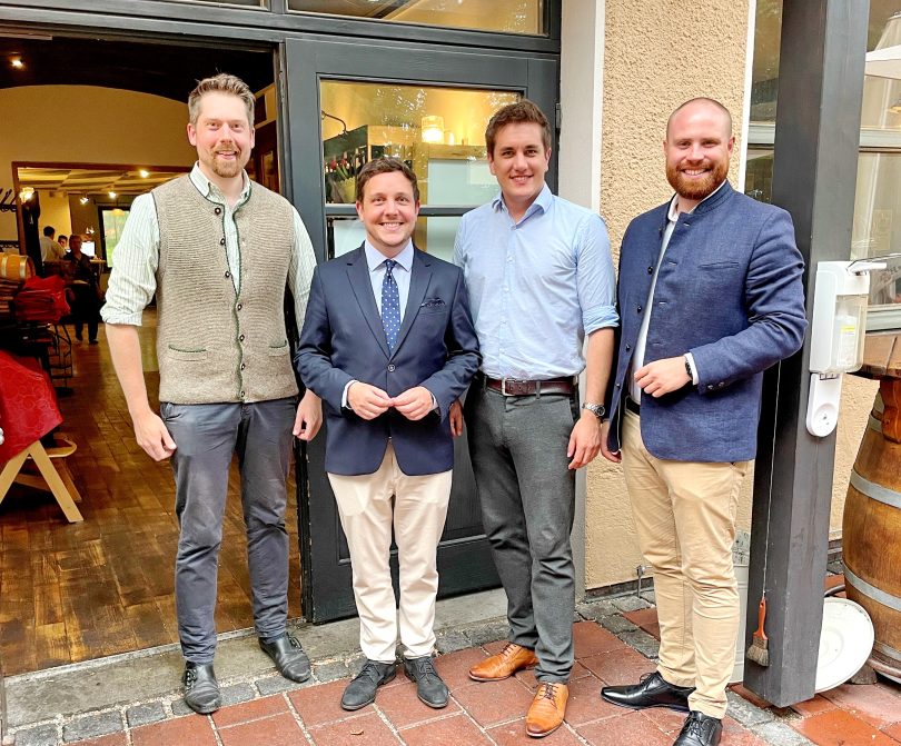 Beitrag und Bild: Klaus Hellmich, Unterwössen – Das nach der Wahl aufgenommene Bild zeigt (von links) den Zweiten Bürgermeister der Gemeinde Unterwössen Johannes Weber (neugewähltes Vorstandschaftsmitglied), den Ersten Bürgermeister der Stadt Traunreut Hans-Peter Dangschat (neugewählter Stellvertretender Vorsitzender), den Ersten Bürgermeister der Gemeinde Ruhpolding Justus Pfeifer (neugewählter Vorsitzender) sowie den Vorsitzenden der CSU-Fraktion im Stadtrat der Großen Kreisstadt Traunstein Konrad Baur, der als Wahlleiter fungierte. Bild: Klaus Hellmich, Unterwössen.