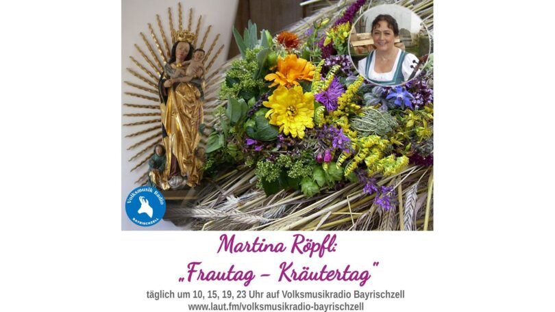 “Frautag – Kräutertag” ist der Titel der neuen 60-minütigen Sendung von Martina Röpfl, die ab Samstag, 3. August 2024, auf ihrem Internet-Sender „Volksmusikradio Bayrischzell“ zu hören ist. Die Redakteurin und Moderatorin beschäftigt sich dieses Mal über das Brauchtum bei der Marienverehrung.