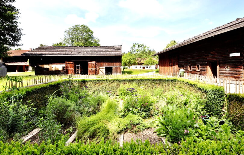 Bericht und Foto: BHM_Holzmannhof Garten.jpg: Blick in den Bauerngarten am Holzmannhof. © Bezirk Oberbayern, Bauernhausmuseum Amerang, G. Nixdorf.