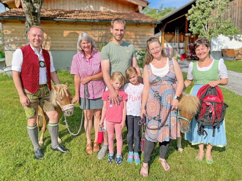 Auch in den Rheinland-Pfälzer Sommerferien wurden einige Familien in die Region Chiemsee, durch die Fluthilfekoordinatoren unter Regie von Thomas Sander vom Rotary Club Nürburg-Adenau vermittelt. Finanziert werden die Unterkünfte über den Sonderspendenfonds „Fluthilfe“ des Rotary Deutschland Gemeindienst (RDG). Für viele von Ihnen ist es die erste Auszeit seit den katastrophalen Ereignissen im vergangenen Jahr. Ein ganz besonderer Dank gilt Martin und Ina (Zweite von links) Thaurer vom Marchlhof in Aschau i.Chiemgau, die der Familie Zedlach die „Auszeit“ bei Ihnen auf ihrem 5 Sterne Urlaub auf dem Bauernhof, der erst kürzlich mit dem Goldenen Gockel prämiert wurde, kostenlos spendierten. Sarah und Michael Zedlach (Mitte) aus Bad Münstereifel freuten sich unendlich über die großzügige Einladung zum ganz besonderen Urlaub auf dem Bauernhof und haben zusammen mit ihren beiden Töchtern Lea (Vorne links) und Mia (Vorne rechts) im Priental wahrlich Kraft geschöpft. Der Rotary Club Chiemsee und Herbert Reiter (links) und Manuela Maier (rechts) von der Tourist Info Aschau i.Ch. bedankten sich bei den Gastgebern und überbrachten der Familie ein Erinnerungsgeschenk.