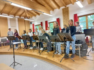 Das Wetter macht derzeit einigen Veranstaltern zu schaffen. Der Musikförderverein von Wildenwart sagte wegen der Prognosen seinen Musikalischen Frühschoppen ab. Kurzerhand entschied sich der Verein mit Vorstand Andreas Willmann, die 19 Kinder, die sich in der Zwergerl-Musik vorbereitet hatten, zu einem Vorspielabend mit ihren Eltern in das Musikantenheim einzuladen. „Das war genau das Richtige, der Nachwuchs war ebenso begeistert wie die Zuhörer, die sich über Einzel-Vorstellungen in Zweier- und Dreier-Besetzung unter anderem aus der Bläserklasse hören lassen konnten“ – so Dirigentin Eva-Maria Gruber.