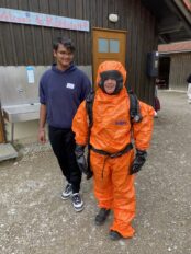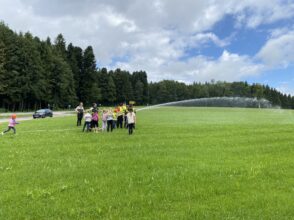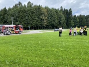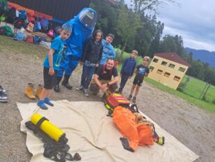 Die Kinder durften die Schutzanzüge anprobieren und eine Löschübung durchführen.