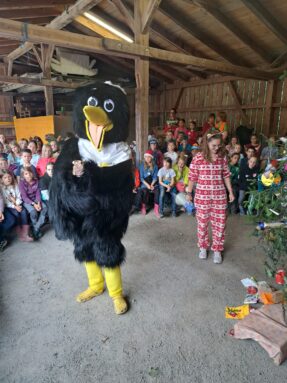 Das KJR-Maskottchen verteilte die Schrottwichtel-Geschenke.