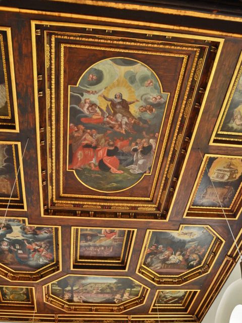 Vom Dampfersteg geht es zum Besucherpavillon, wo es die Eintrittskarten für alle Museen und das Schloss gibt. Wir folgen der Wandermarkierung mit dem blauen Punkt und erreichen über die Treppe die Schlosswirtschaft und das ehemalige Kloster. Eine Besichtigung der prächtigen Räume im Rokoko-Stil, des Verfassungsmuseums und zweier Gemäldegalerien lohnt sich. In der alten Marienkirche sind die Kassettendecke und der frühbarocke Altar sehenswert. Auch ein Blickin den Klosterinnenhof mit dem romantischen Rosengarten ist empfehlenswert, bevor wir am Stallgebäude vorbei durch eine kleine Allee zur idyllisch am See gelegenen Kreuzkapelle hinunter wandern. Danach geht es immer am Uferentlang