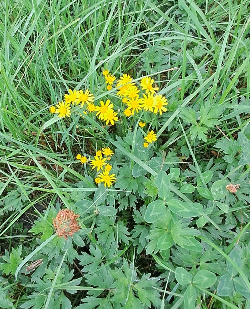 – Jakobs-Kreuzkraut – die Blütenstände sehen aus wie Gänseblümchen, nur sind sie komplett gelb!