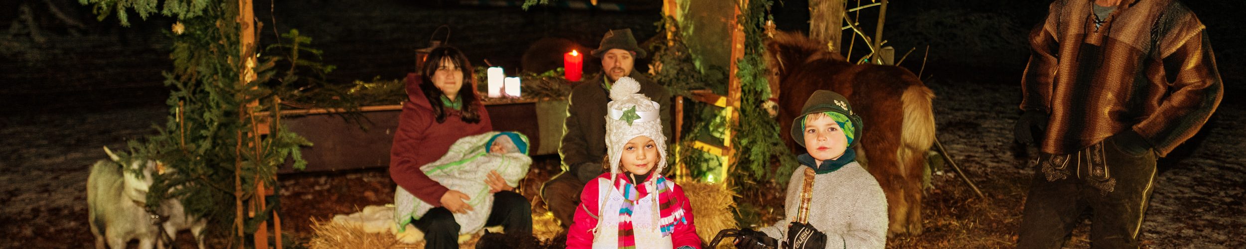Der Advent lädt dazu ein, die Vorweihnachtszeit zusammen mit der Familie und den Kindern zu verbringen. Eine Möglichkeit, die Zeit des Wartens zu verkürzen, war für die Krippen- und Kindergartenkinder und deren Eltern am Samerberg der Besuch einer lebenden Krippe im Buchenwald.