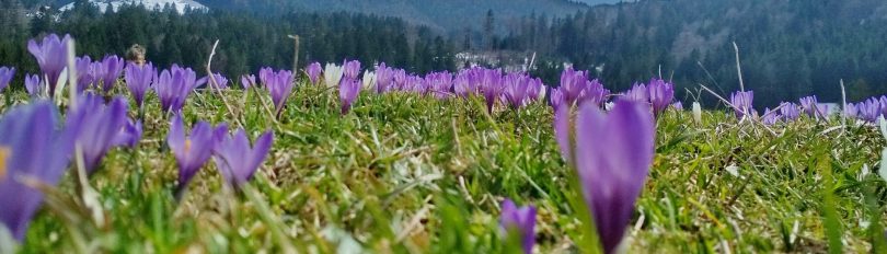 Sonne und Wind haben in den letzten Tagen viel Schnee auf den heimischen Bergen genommen – und damit Platz geschaffen für die ersten Farbtupfer auf den Almwiesen. Besonders farbig und prächtig zeigt sich derzeit die Krokusblüte auf dem Heuberg wie diese aktuelle Aufnahme bei den Daffnerwaldalmen zeigt.