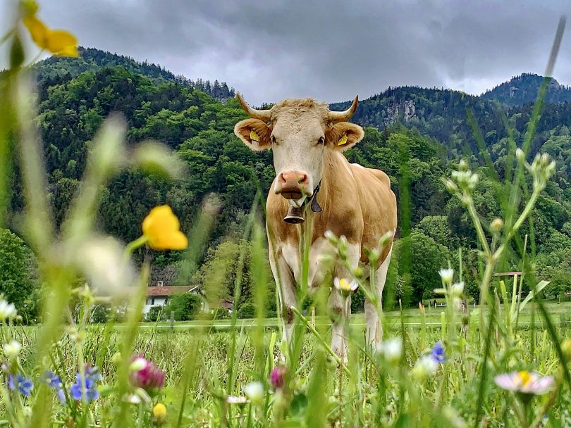 Ausgangssperre, ein Wort, das gerade in der jetzigen Zeit uns Menschen gleich die Ohren spitzen lässt und in Respekt versetzt. Für die dickhäutigen Vierbeiner ist das jedoch derzeit überhaupt kein Thema, denn der Wonnemonat Mai bringt es mit sich, dass die Kühe die blühenden und satten Wiesen wie hier in Aschau i.Chiemgau genießen können. Über kurz oder lang wartet dann noch eine weitere Freude, wenn es dann heißt „der Berg ruft“. Über das Sommerhalbjahr dürfen die Kühe von Ingrid und Lorenz Scheck dann Bergluft schnuppern. Rund um die Schlechtenbergalm im Kampenwand-Gebiet dürfen die Kühe dann die Freiheit genießen und leisten dabei beste Dienste zum Erhalt der Almflächen. Die Tiere leben es einen dabei vor, ja man muss das Leben immer wieder aufs Neue genießen.