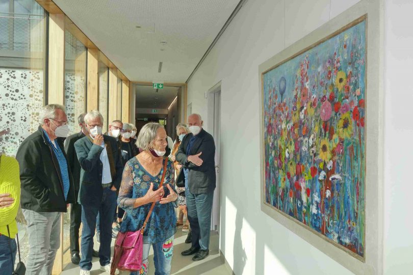 Regionale Kunst hat im Haus der Chiemseehospiz in Bernau Einzug gehalten. „Damit kommt Leben in unser Haus, das für viele Menschen die letzte Station in ihrem Leben ist“ – so Vorstand Stefan Scheck vom Chiemseehospiz gKU anlässlich eines Rundganges durch das Haus mit den Künstlern, die ihre ganz besonderen Werke den schwer kranken Bewohnern und dem dort tätigen Personal gewidmet haben.