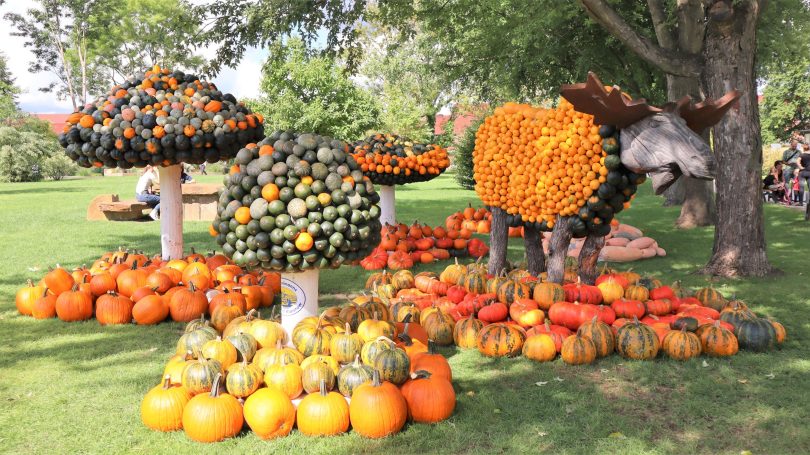 Stolz steht er auf dem Rasen zwischen dem Wiesencafé und dem großen Spielplatz, der Elch, gerahmt von riesigen Pilzen. Meist von fotografierenden Gartenschaugästen umgeben, sind die aus Kürbissen gestalteten Figuren des Spargelhofes Klaistow eine der Herbstattraktionen auf dem Gartenschaugelände.