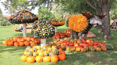 „Wir haben hier insgesamt etwa 3000 Kürbisse verarbeitet, allein am Elch sind es 1200“, sagt Timm Kleist vom Spargelhof Klaistow. 15 verschiedene Sorten wie Butternut-, Spaghetti- oder Ölkürbisse zeigen die Form- und Farbvielfalt des typisch herbstlichen Gemüses. Auf dem Spargelhof selbst dreht sich die Kürbisausstellung dieses Jahr um das Leben am und im Meer. „Auf dem Gartenschaugelände haben wir uns aber für das Waldthema entschieden, das passt perfekt zum Areal mit den vielen eindrucksvollen Bäumen“, so Timm Kleist.