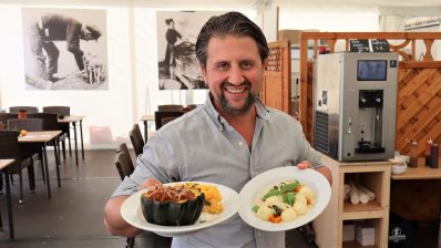 Alle Kürbisse sind auf den Feldern des Spargelhofes gewachsen. „Es war zwar aufgrund der Trockenheit ein schwieriges Kürbisjahr. Unser Gärtnerteam hat aber dafür gesorgt, dass wir eine ausreichende Ernte haben“, so Timm Kleist. Das angebotene Fleisch, etwa das panierte Schweineschnitzel mit Pilzrahm und Kartoffelrösti, stammt zudem komplett von in Brandenburg aufgezogenen Tieren. Für Spezialitäten wie die saftige Bärlauch-Bratwurst, die auf dem Archegrill der LAGA brutzelt, wird das Fleisch zudem direkt auf dem Klaistower Hof verarbeitet.